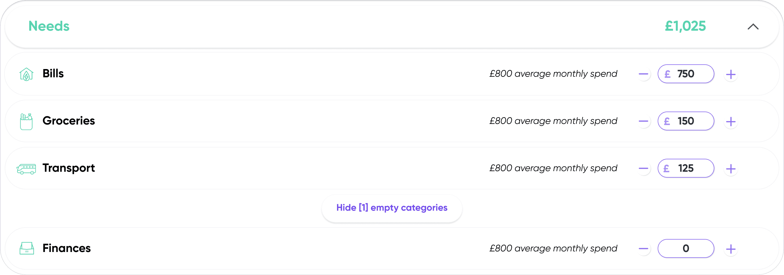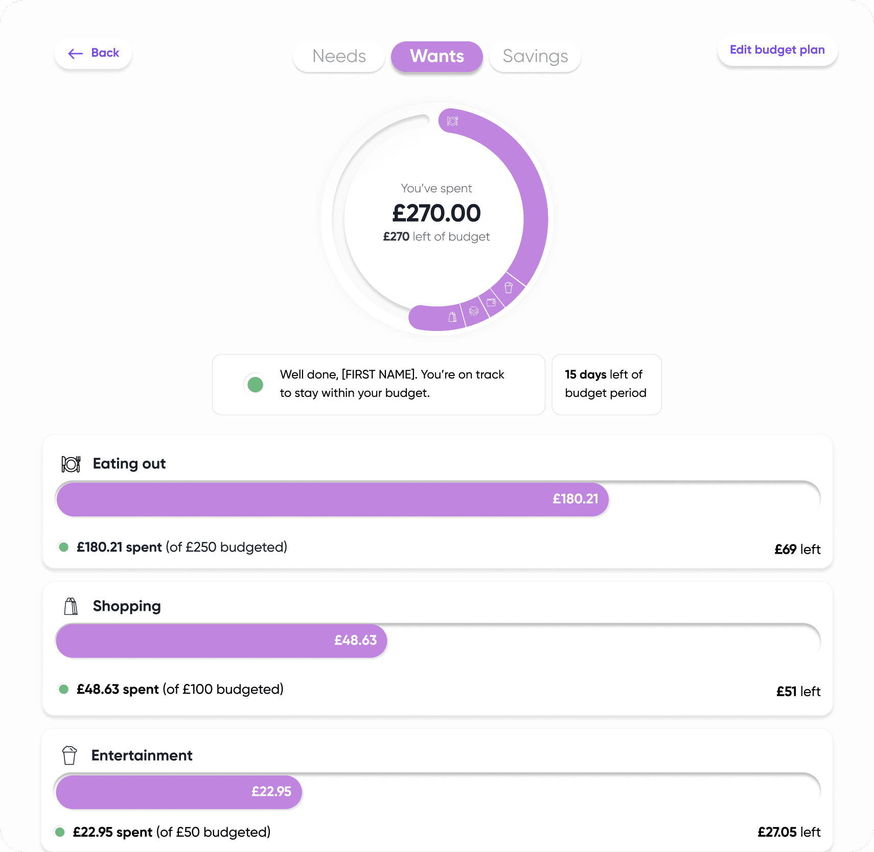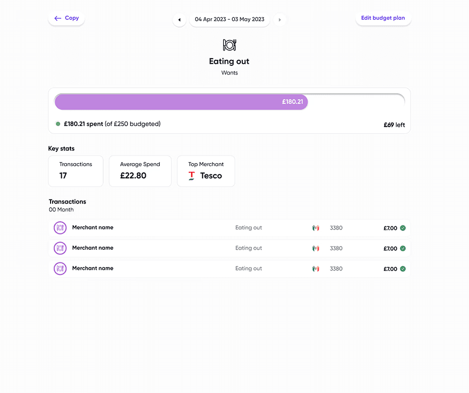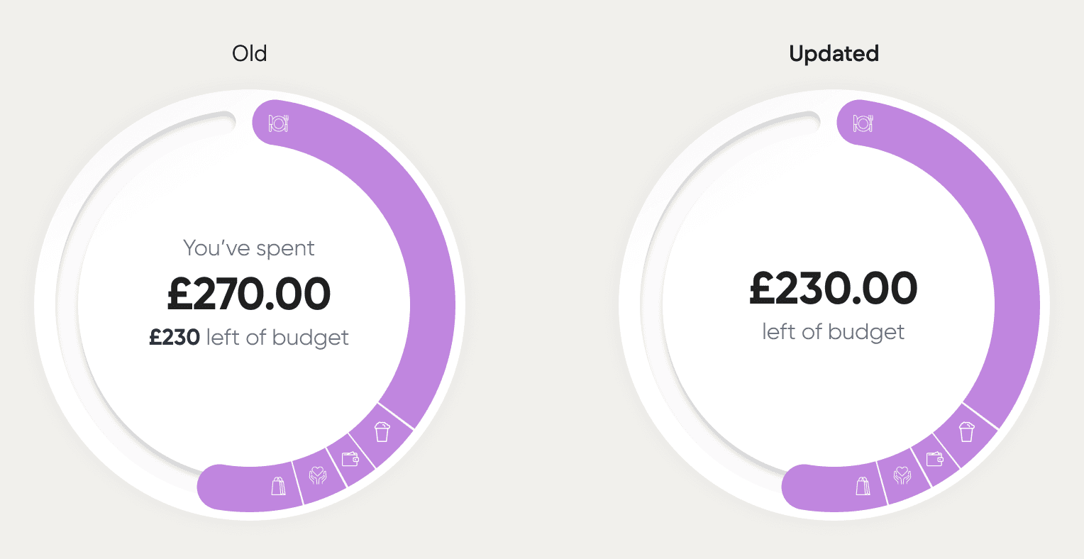 To help users quickly identify their remaining budgets, we revisited the labelling and naming conventions. Reducing the text within the Budget Pie Chart enabling the user to identify, with ease, the amount remaining.