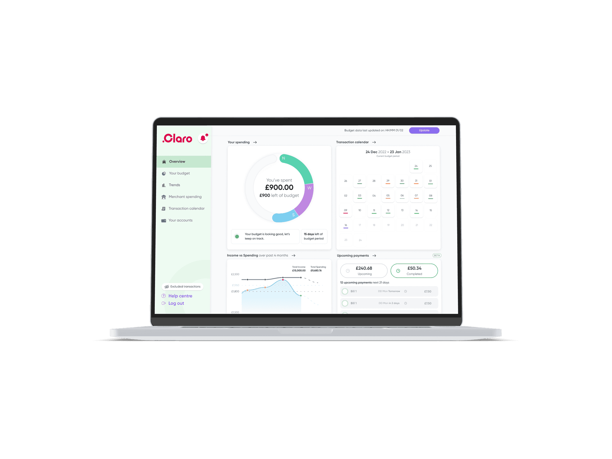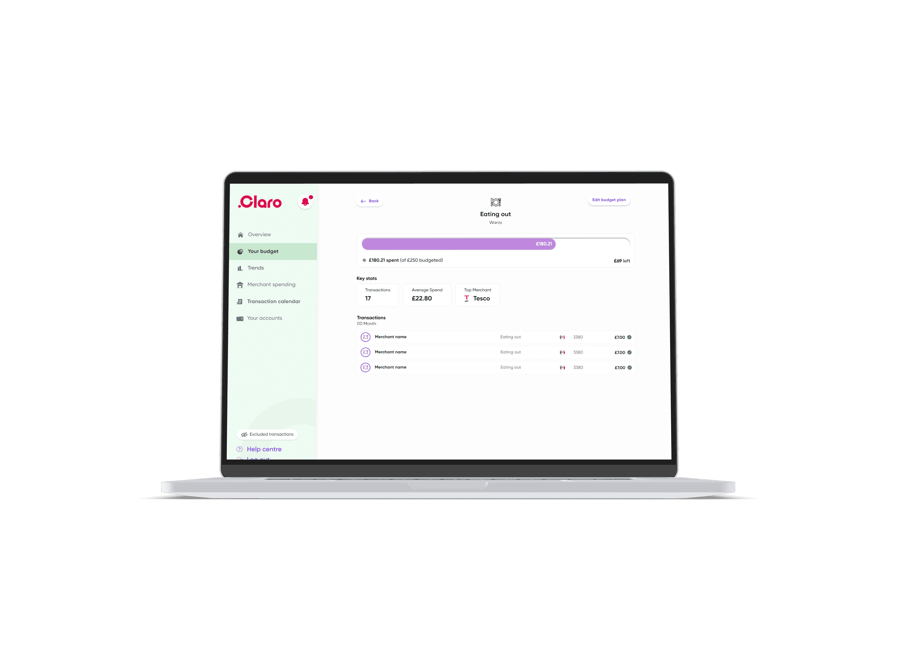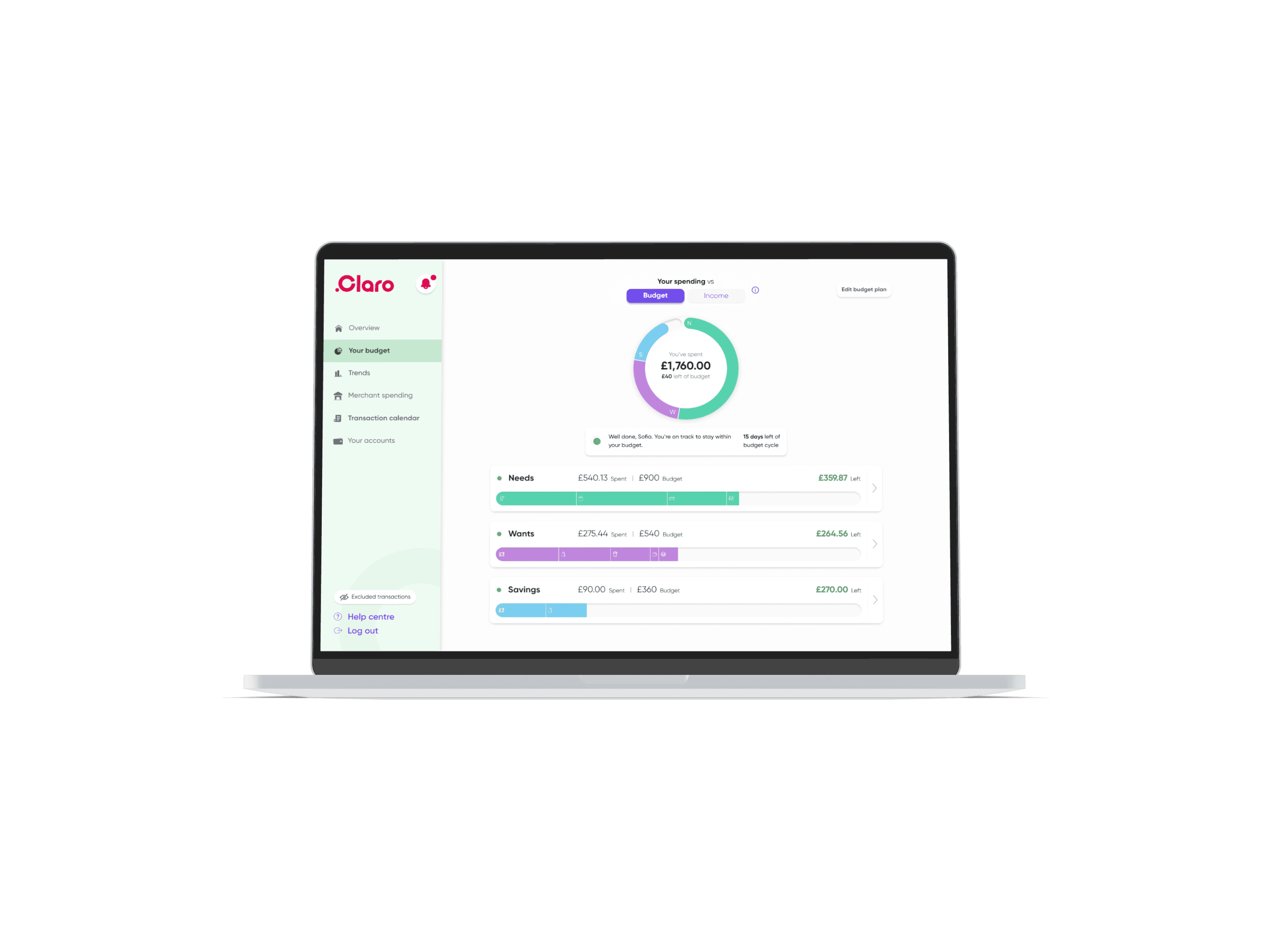 To help users quickly identify their remaining budgets, we revisited the labelling and naming conventions. Reducing the text within the Budget Pie Chart enabling the user to identify, with ease, the amount remaining.