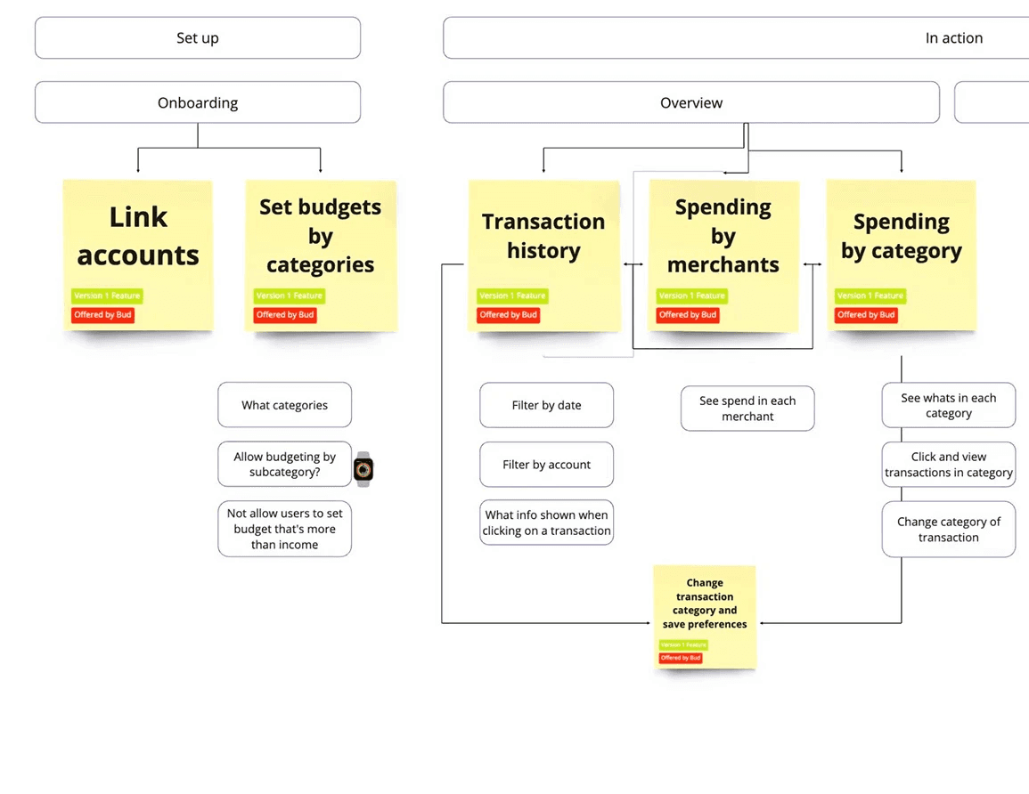 To begin the project I needed to understand our computers and the current market of budgeting tools. Cross examining these with our in house financial experts allowed me to identify feature gaps and opportunities for differentiation. By combining my expert-informed understanding of user needs with detailed competitive intelligence, I could develop a more strategic approach to positioning our budgeting tool in the market and defining its unique value proposition.
